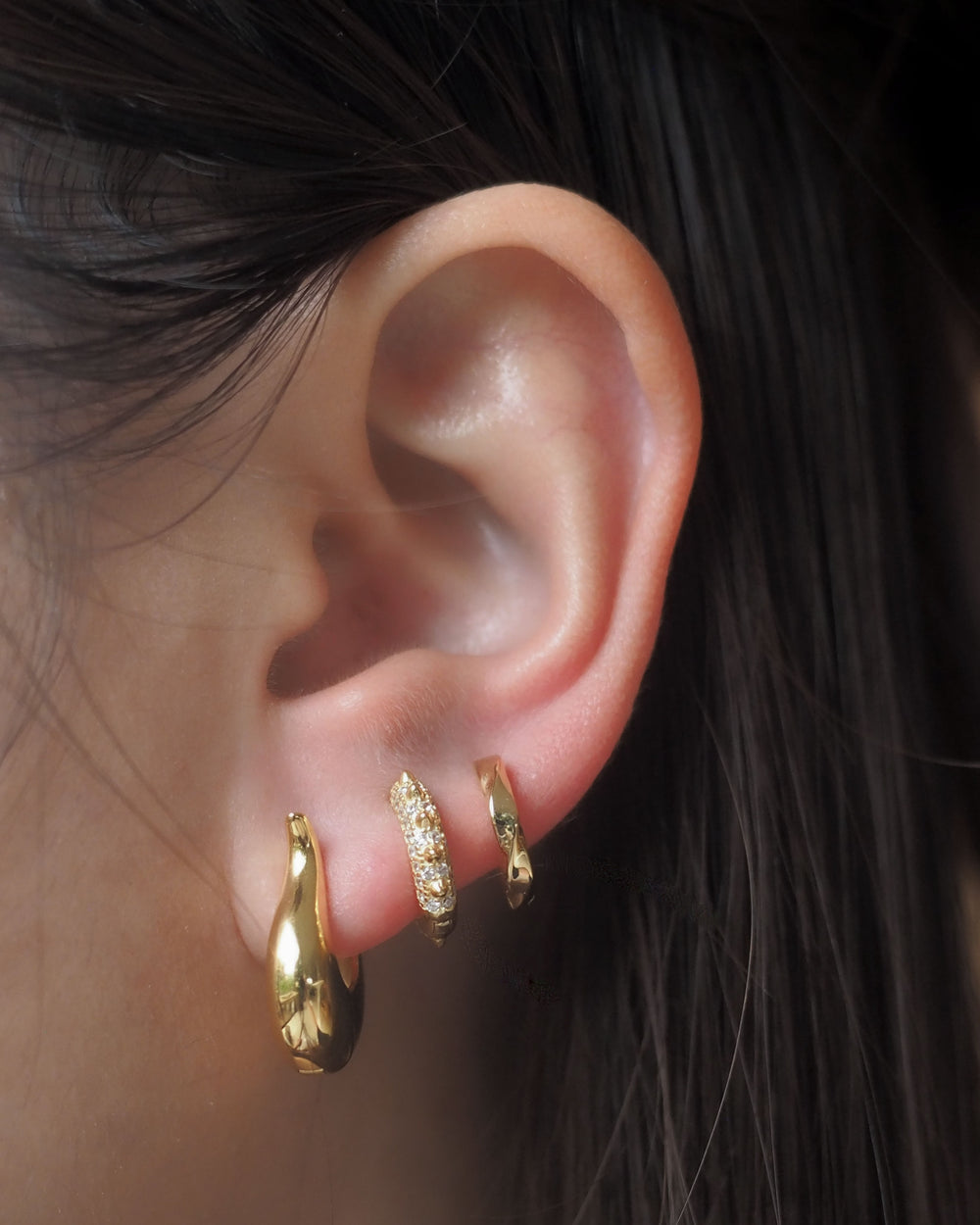 925 Sterling Silver - CZ Nadine Gold Hoop Earrings (Huggies)