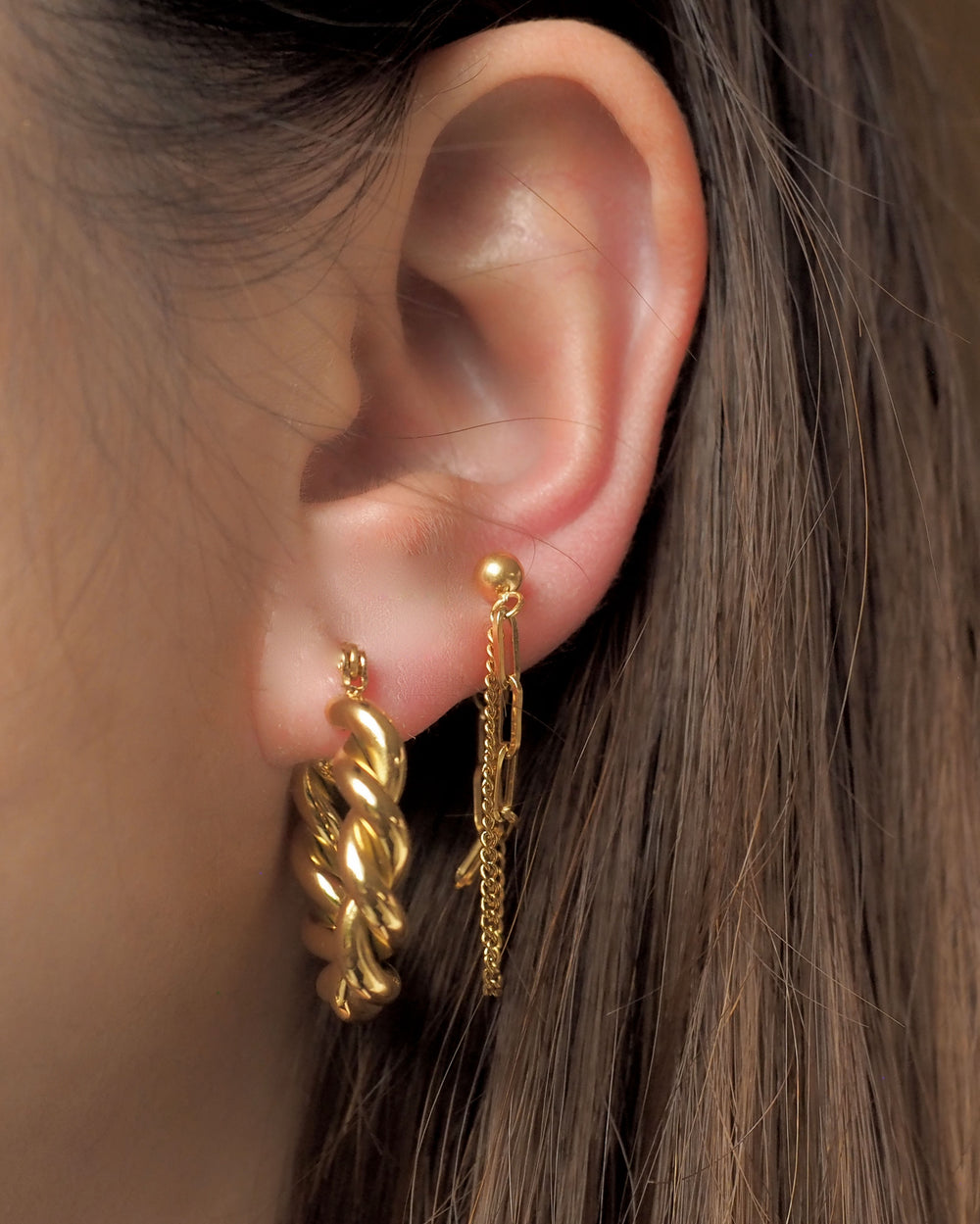 A pair of sleek & minimal statement hoops with a layered necklace are always a great addition to your daily look. Pair them with a simple white t-shirt and pair of jeans for a more casual flair.